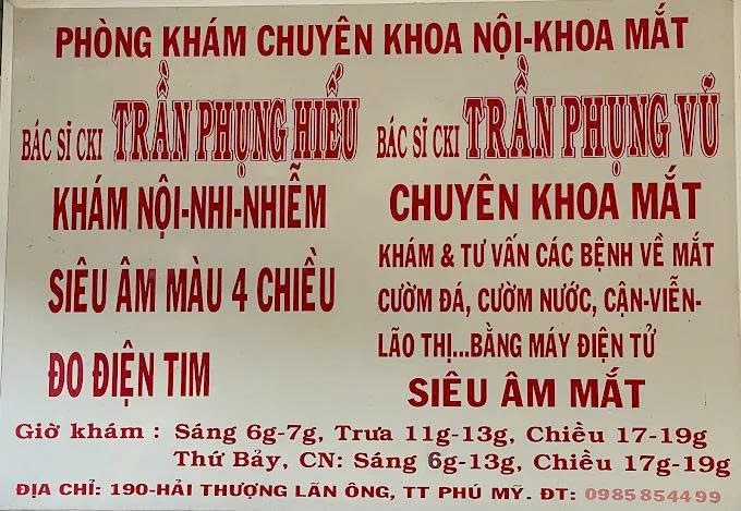 An Giang - Phòng khám chuyên khoa Nội - Khoa Mắt BSCKI Trần Phụng Hiếu, BS.CKI Trần Phụng Vũ