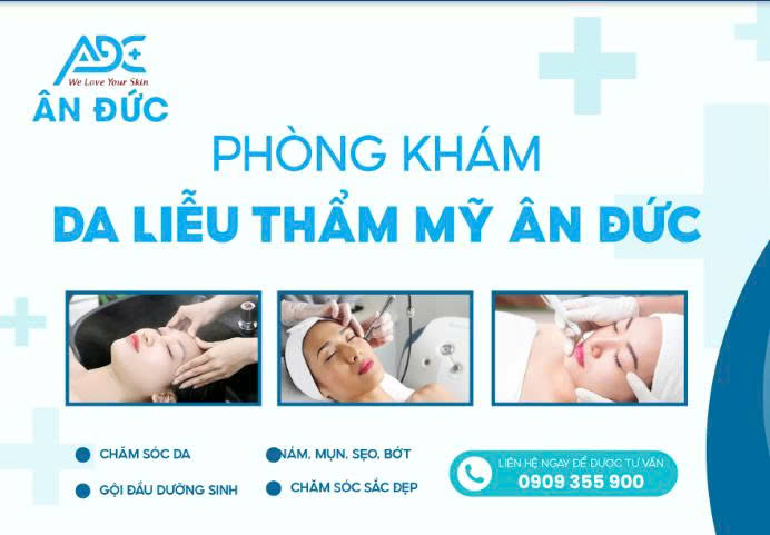 Phòng khám được trang bị công nghệ hiện đại, dược mỹ phẩm chính hãng và nhà thuốc đạt chuẩn GPP, đáp ứng đầy đủ nhu cầu điều trị các bệnh lý và thẩm mỹ da. Ân Đức luôn đồng hành tận tâm cùng khách hàng trong hành trình chăm sóc và phục hồi làn da khỏe đẹp.