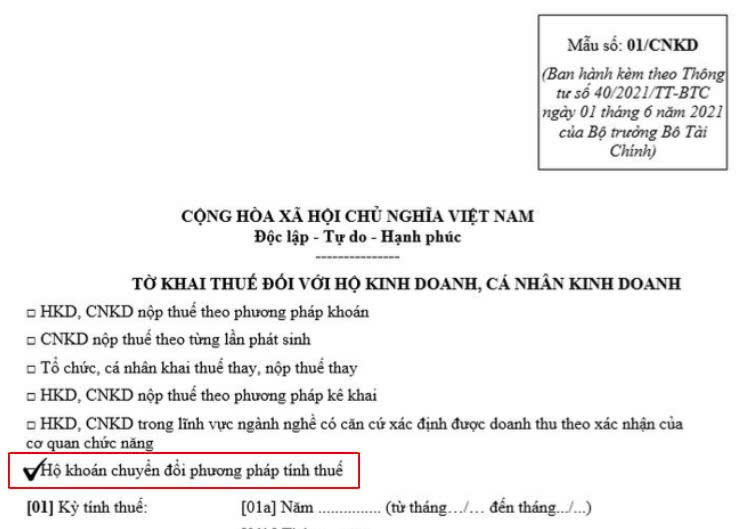 →Tích chọn mục “Hộ khoán chuyển đổi phương pháp tính thuế” trên tờ khai để cơ quan thuế giảm mức thuế khoán cho thời gian chuyển đổi.