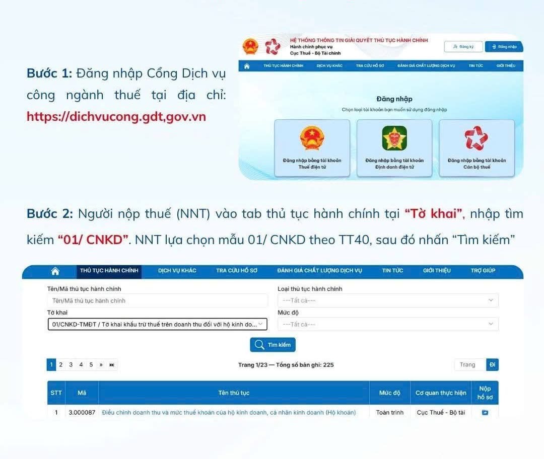 Hướng dẫn đăng ký Mẫu 01/CNKD dành cho hộ kinh doanh